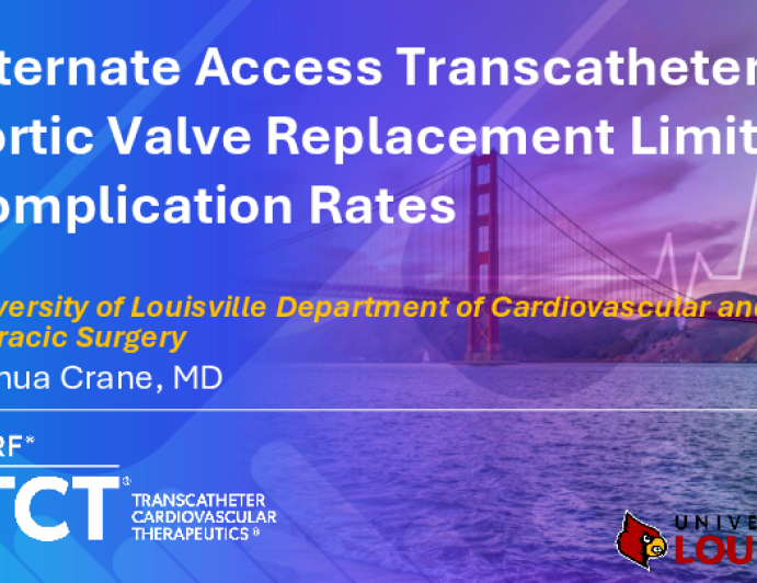 Presentation TCT 2025 TCT 722: Alternate Access Transcatheter Aortic Valve Replacement Limits Complication Rates Presenter: Joshua Crane October 27, 2025 REGISTER for free or LOG IN to view this content TCT 2025 Up Next Presentation TCT 2025 TCT 721: Single- vs Double Perclose-Proglide Device Strategy for Access Site Closure of Transcatheter Aortic Valve Replacement: A Systematic Review and Meta-Analysis of Updated Evidence Presenter: Ishaq Khoury October 27, 2025 More slides + Presentation TCT 2025 TCT 720: Comparative Study of Single- versus Double-ProGlide Device Strategy for Access Site Closure of Transfemoral Transcatheter Aortic Valve Replacement Presenter: Xianbao Liu October 27, 2025 Presentation TCT 2025 TCT 725: First in Man (FIM) Experience of the Vivasure PerQseal® ELITE System for Large Hole Venous Closure: ELITE Venous Study Presenter: Antigone Kostea October 27, 2025 We Recommend Disclosures <p>Nothing to disclose</p>