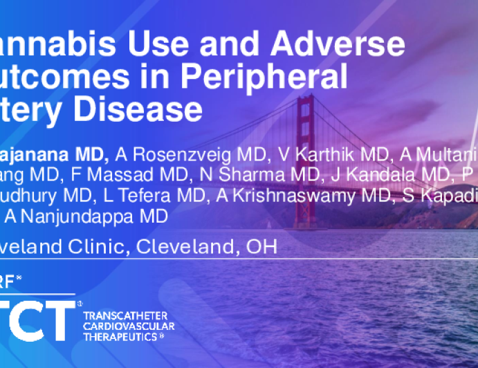 Presentation TCT 2025 TCT 771: Cannabis Use and Adverse Outcomes in Peripheral Artery Disease Presenter: Deepakraj Gajanana October 26, 2025 REGISTER for free or LOG IN to view this content TCT 2025 Up Next Presentation TCT 2025 TCT 886: The CoApt Valve: A Novel Atrioventricular Valve Device by NeoCor Presenter: George A. Kramer October 26, 2025 More slides + Presentation TCT 2025 TCT 649: Five-Year Clinical Outcomes of the Randomized Controlled Trial of Angiography Versus Pressure Ratio-Guided Enhancement Techniques - Fractional Flow Reserve (TARGET-FFR) Presenter: Damien Collison October 26, 2025 Presentation TCT 2025 TCT 880: Mitral Annular Remodeling Following HighLife Transcatheter Mitral Valve Replacement: a Single-Center Experience Presenter: Wolfgang Rottbauer October 26, 2025 We Recommend Disclosures <p>Nothing to disclose</p>