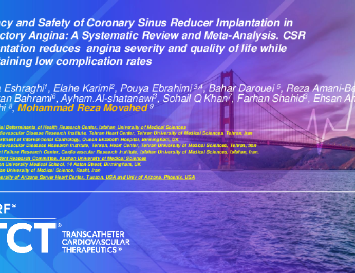 TCT 789: Efficacy and Safety of Coronary Sinus Reducer Implantation in Refractory Angina: A Systematic Review and Meta-Analysis. CSR implantation reduces angina severity and quality of life while maintaining low complication rates.