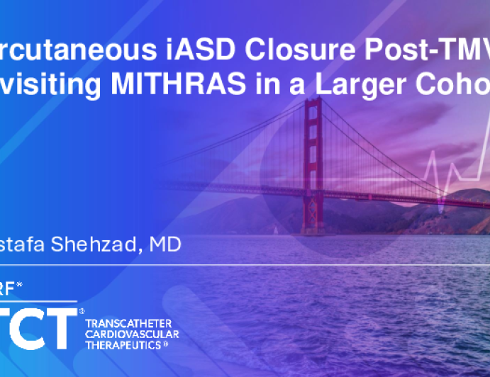 Presentation TCT 2025 TCT 817: Percutaneous iASD Closure Post-TMVR: Revisiting MITHRAS in a Larger Cohort Presenter: Mustafa Shehzad October 25, 2025 REGISTER for free or LOG IN to view this content TCT 2025 Up Next Presentation TCT 2025 TCT 816: Quantitative 3D Transesophageal Echocardiography Analysis of Mitral Valve Geometry for Transcatheter Edge-to-edge Repair Strategy in Atrial Functional Mitral Regurgitation Presenter: Kuan-Chih Huang October 25, 2025 More slides + Presentation TCT 2025 TCT 818: The Cost of Access: Do Iatrogenic ASDs after Transseptal Edge-to-Edge Repair Need to Be Closed? – Insights From a National Cohort Presenter: Mustafa Shehzad October 25, 2025 Presentation TCT 2025 TCT 1144: The Impact of Prosthesis-Patient Mismatch on Hemodynamic Valve Deterioration after Transcatheter Aortic Valve Replacement Presenter: Revathy Sampath-Kumar October 25, 2025 We Recommend Disclosures <p>Nothing to disclose</p>
