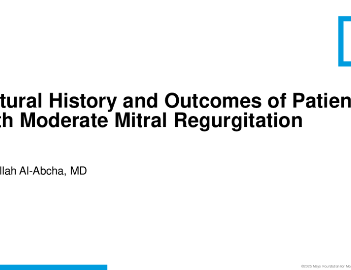 Presentation TCT 2025 TCT 861: Natural History and Clinic Outcomes of Patients with Moderate Mitral Regurgitation Presenter: Abdullah Al-Abcha October 25, 2025 REGISTER for free or LOG IN to view this content TCT 2025 Up Next Presentation TCT 2025 TCT 860: Comparative Outcomes of Atrial versus Ventricular Functional Mitral Regurgitation in a Contemporary Structural Heart Population Presenter: MohamadBader AboHajar October 25, 2025 More slides + Presentation TCT 2025 TCT 857: National Trends in Nonrheumatic Valvular Heart Disease Mortality Before and After the COVID-19 Pandemic in the United States Presenter: Hasan Munshi October 25, 2025 Presentation TCT 2025 ARS 12: What AI Will Mean for You in the Future Presenter: Jessica L. Mega October 25, 2025 We Recommend Disclosures <p>Nothing to disclose</p>