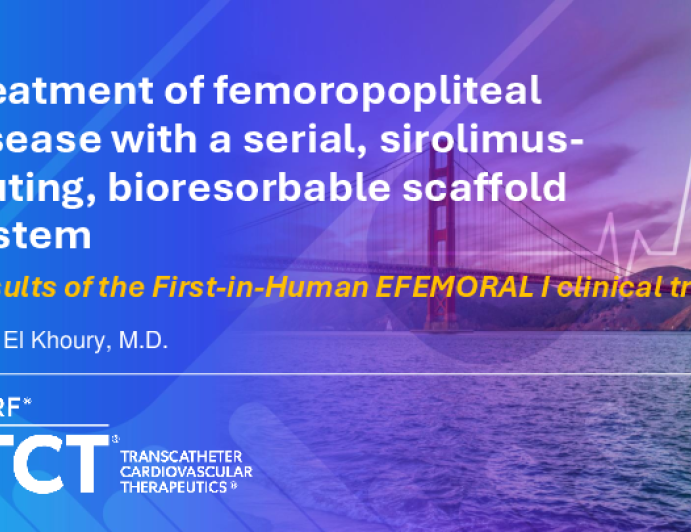 TCT 904: Treatment of femoropopliteal disease with a serial, sirolimus-eluting, bioresorbable vascular scaffold system: Results of the First-in-Human EFEMORAL I clinical trial