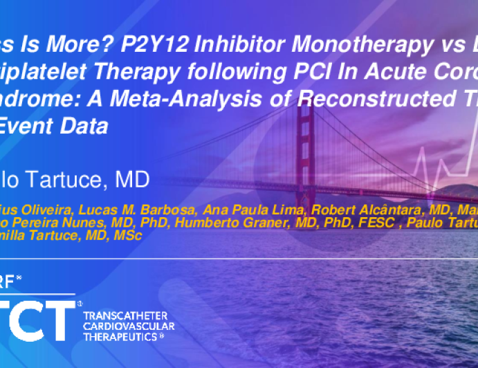TCT 995: Less Is More? P2Y12 Inhibitor Monotherapy vs Dual Antiplatelet Therapy following PCI In Acute Coronary Syndrome: A Meta-Analysis of Reconstructed Time-to-Event Data