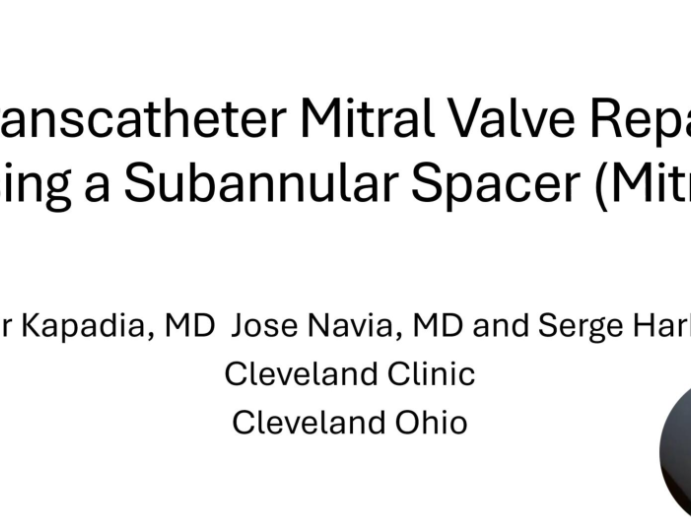 Presentation TCT 2025 Transcatheter Mitral Valve Repair Using a Sub-Annular Spacer (Mitria) Presenter: Samir R. Kapadia October 28, 2025 REGISTER for free or LOG IN to view this content TCT 2025 Up Next Presentation TCT 2025 Transcatheter Cardiac Leaflet Enhancer (CARLEN) to Treat Functional Mitral Regurgitation: Technology Update, Human Experience and Imaging Insights Presenter: Susheel K. Kodali October 28, 2025 More slides + Presentation TCT 2025 Primary Results from the ATHENS-HF Trial: An FIH Study of the Chronically-Adjustable, Biatrial Pressure Sensing Interatrial Shunt (Adona Medical) Presenter: Gregg W. Stone October 28, 2025 Presentation TCT 2025 Xenter MD: Guidewire Based Dual Sensors and Physical Intelligence to Diagnose Paravalvular Leaks During TAVR Presenter: William A. Gray October 28, 2025 We Recommend Disclosures <p>Nothing to disclose</p>