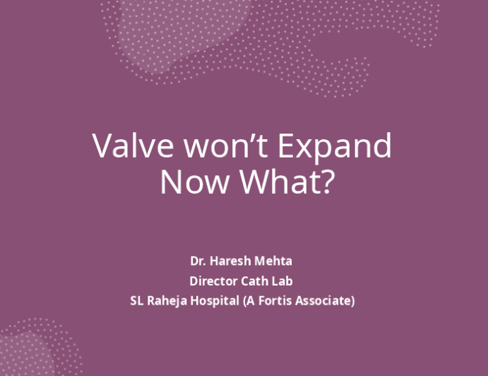 Presentation TCT India 2025 Valve won’t Expand: Now What? Presenter: Haresh Mehta July 26, 2025 REGISTER for free or LOG IN to view this content Aortic Valve CT/CT-FFR Presentation TCT India 2025 Up Next Presentation TCT India 2025 Master Case Presenter: Sripal Bangalore July 27, 2025 More slides + Presentation TCT India 2025 Embolic Protection in TAVR: Present Status and Future Presenter: Samir Kapadia July 27, 2025 Presentation TCT India 2025 Challenging Cases - Masters Presenter: Saurabh Gupta July 27, 2025 We Recommend