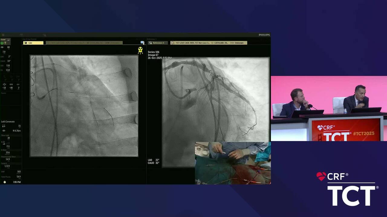 October 27, 2025 Live Case TCT 2025 Share Share this video Copy Link Share on Social Media Video Coronary Live - Live Case - Intravascular Imaging in Complex PCI- REGISTER for free or LOG IN to view this content Live Case TCT 2025 Latest Videos 12:00 TCT 2025: Shark Tank Award 11:14 Hard Conversations with Patients: Teaching and Doing 16:38 On Record: How Does CABG Continue to Be Optimized? 59:07 Structural Live - Transcatheter Mitral Edge-to-Edge Repair for Primary MR 30:52 Structural Live - Mitral Transcatheter Valve Replacement for MAC (Intrepid) and Mitral Transcatheter Edge-to-Edge Repair for Primary MR (MitraClip) 12:44 Endovascular - Intravascular and Extravascular Imaging for PAD and Venous Disease with Live Case from NYP-Columbia University 01:30 Coronary Live - Left Main Coronary Bifurcation PCI 00:03 Coronary Live - Complex Coronary PCI_Intravascular Imaging & Physiology 31:11 Coronary Live - Coronary Chronic Total Occlusion_C18 00:39 Coronary Live - Coronary Chronic Total Occlusion 27:23 Coronary Live - ACS and Multivessel Disease with Intravascular Imaging 00:06 Coronary - Complex PCI in ACS PreviousNext Partner Content Explore All Patient Selection and Treatment Goals of Echocardiography and Quality Data of TMVR in the Heart Failure Paradigm of Insights on Intrepid 2-Yr Mitral TF EFS of Effective Management of Calcium: Novel Hertz Contact Intravascular Lithotripsy of Studying the Clinical Impact of Restoring Native Flow with Biomimetic DurAVR® THV of